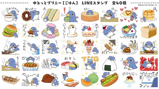 今回配信されるのは、ペンギンみたいでまるくてかわいい「ゆるっとプリニー」シリーズのスタンプ第4弾! 今回のテーマは「ごはん」! 見てるとお腹が空いてくる……食べ物だらけの飯テロスタンプをご用意いたしました!