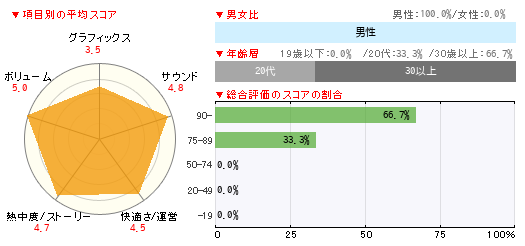 グラフィックス サウンド 快適さ/運営 熱中度/ストーリー ボリューム 3 5 5 4 5 -