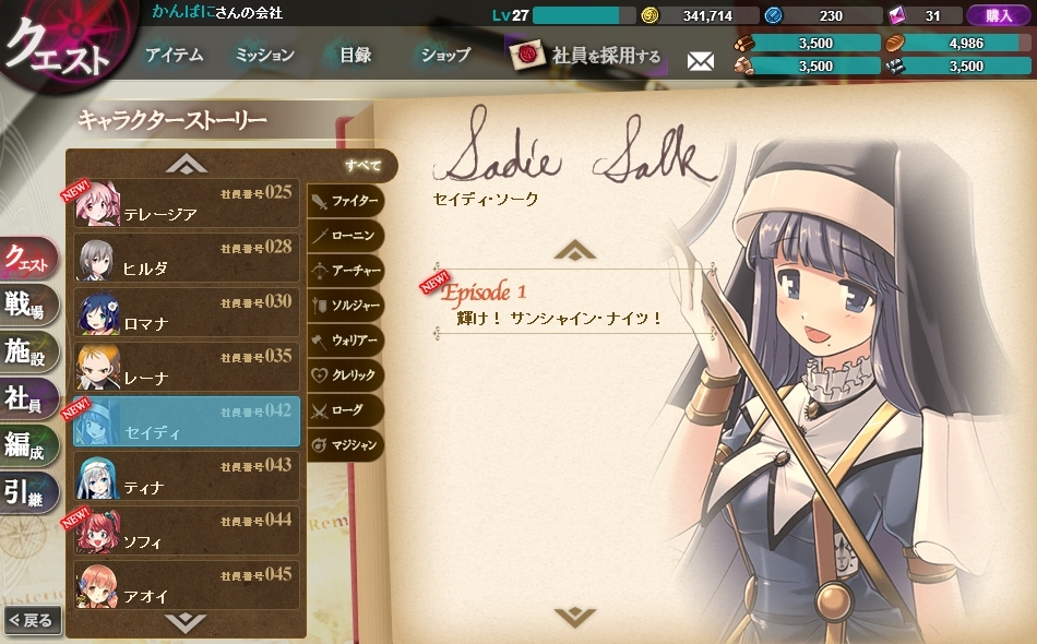 • 画像ギャラリー No.002 | 「かんぱに☆ガールズ」エルミ/イレーヌ/ソフィ/セイディの追加シナリオとキャラクター専用装備&スキルを実装。「かんぱに☆春の新人研修」も実施中
