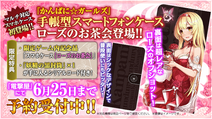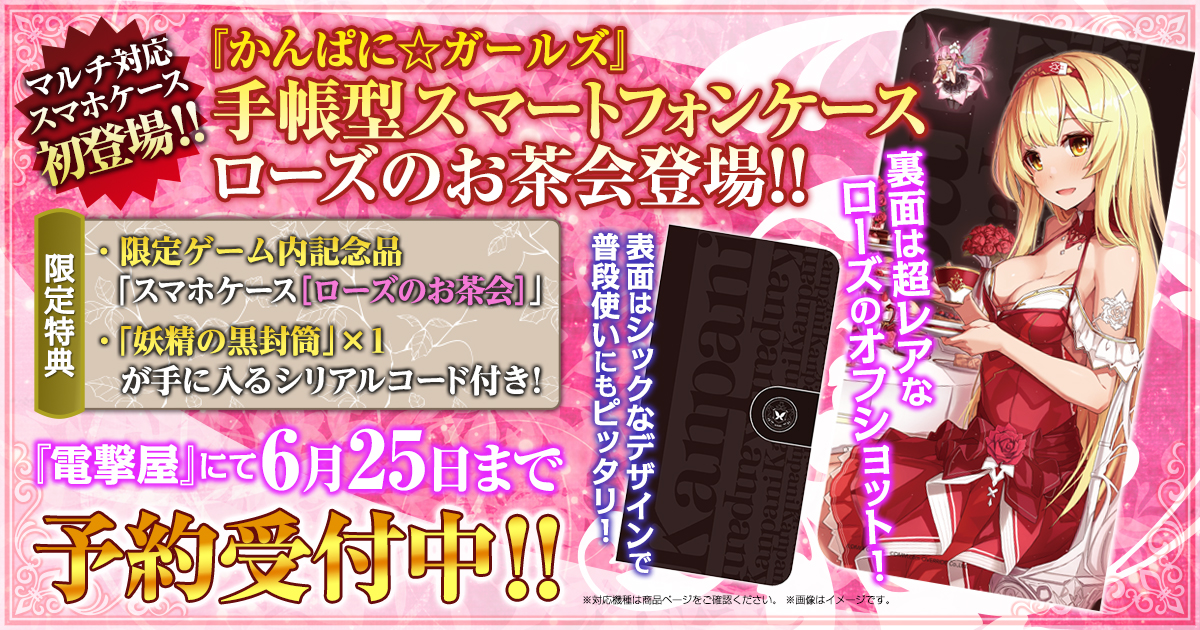 「かんぱに☆ガールズ」,“手帳型スマートフォンケース ローズのお茶会”が8月27日に発売