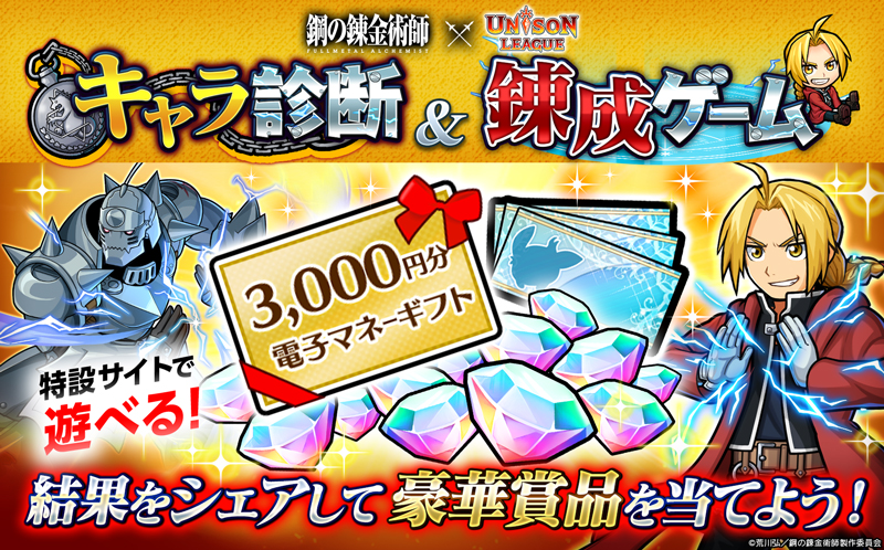 「ユニゾンリーグ」,TVアニメ「鋼の錬金術師 FULLMETAL ALCHEMIST」コラボを開催
