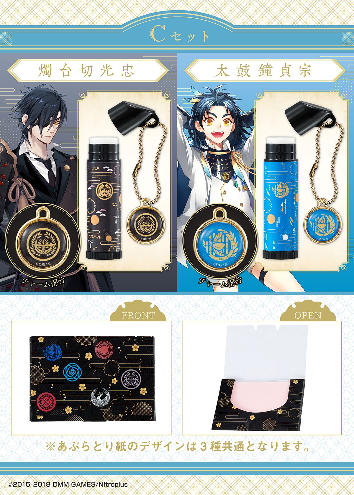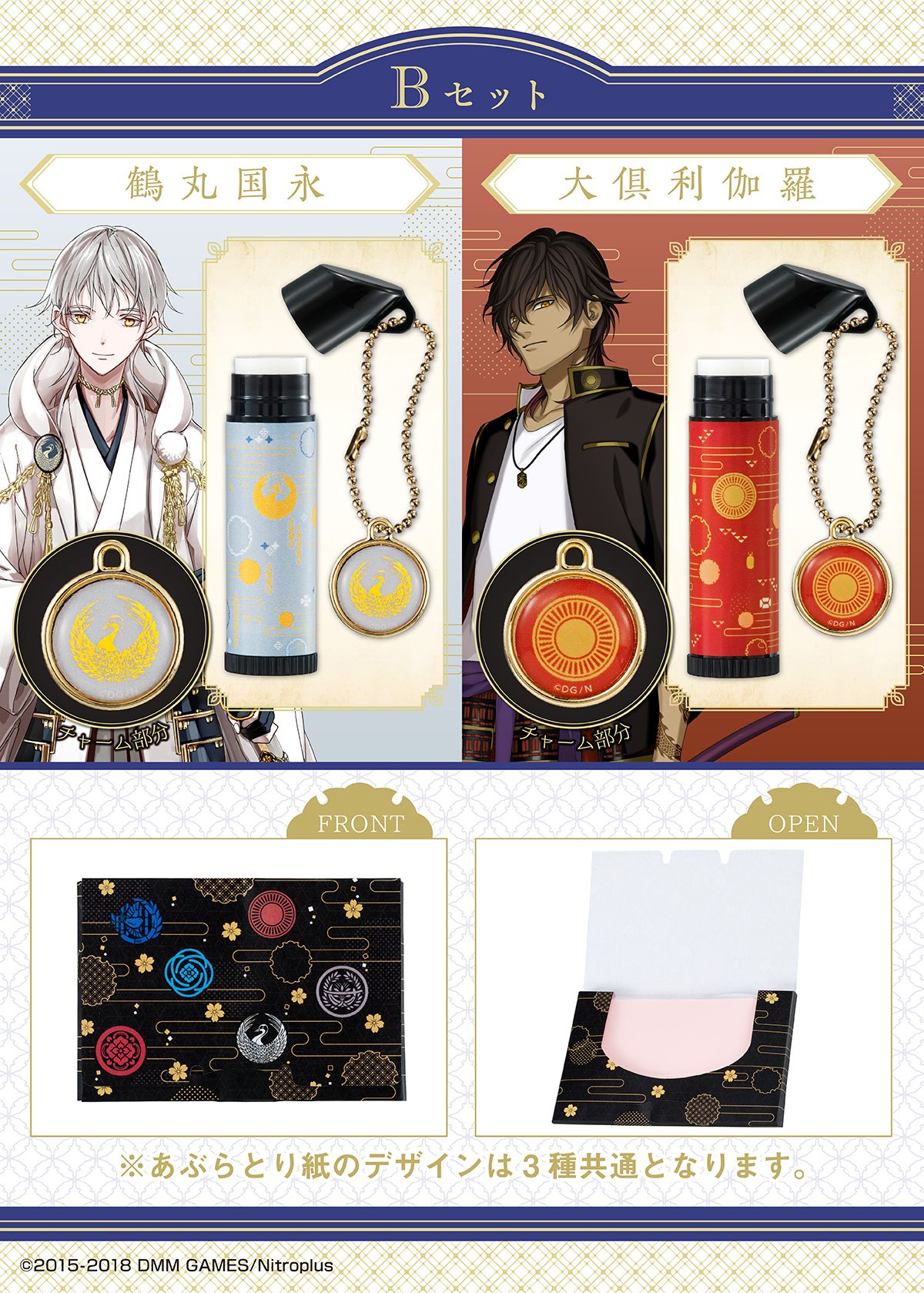 「刀剣乱舞」,刀剣男士をイメージしたリップクリームとあぶらとり紙のセットが予約受付中