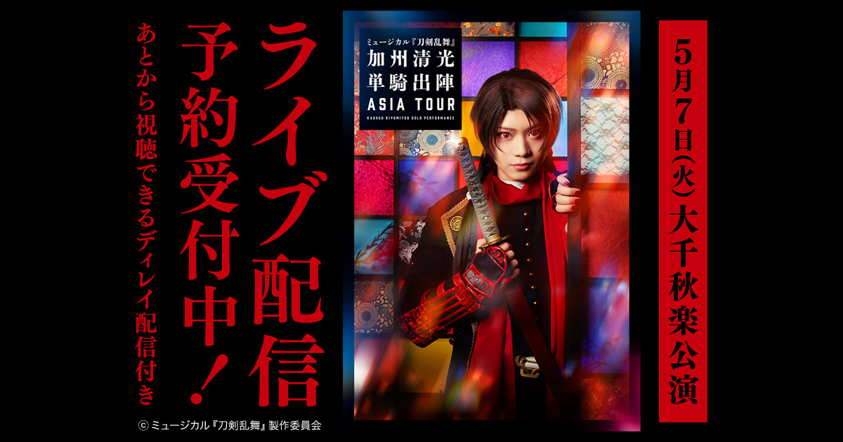 「ミュージカル『刀剣乱舞』 加州清光 単騎出陣 アジアツアー」大千秋楽ライブ配信の予約を受付中