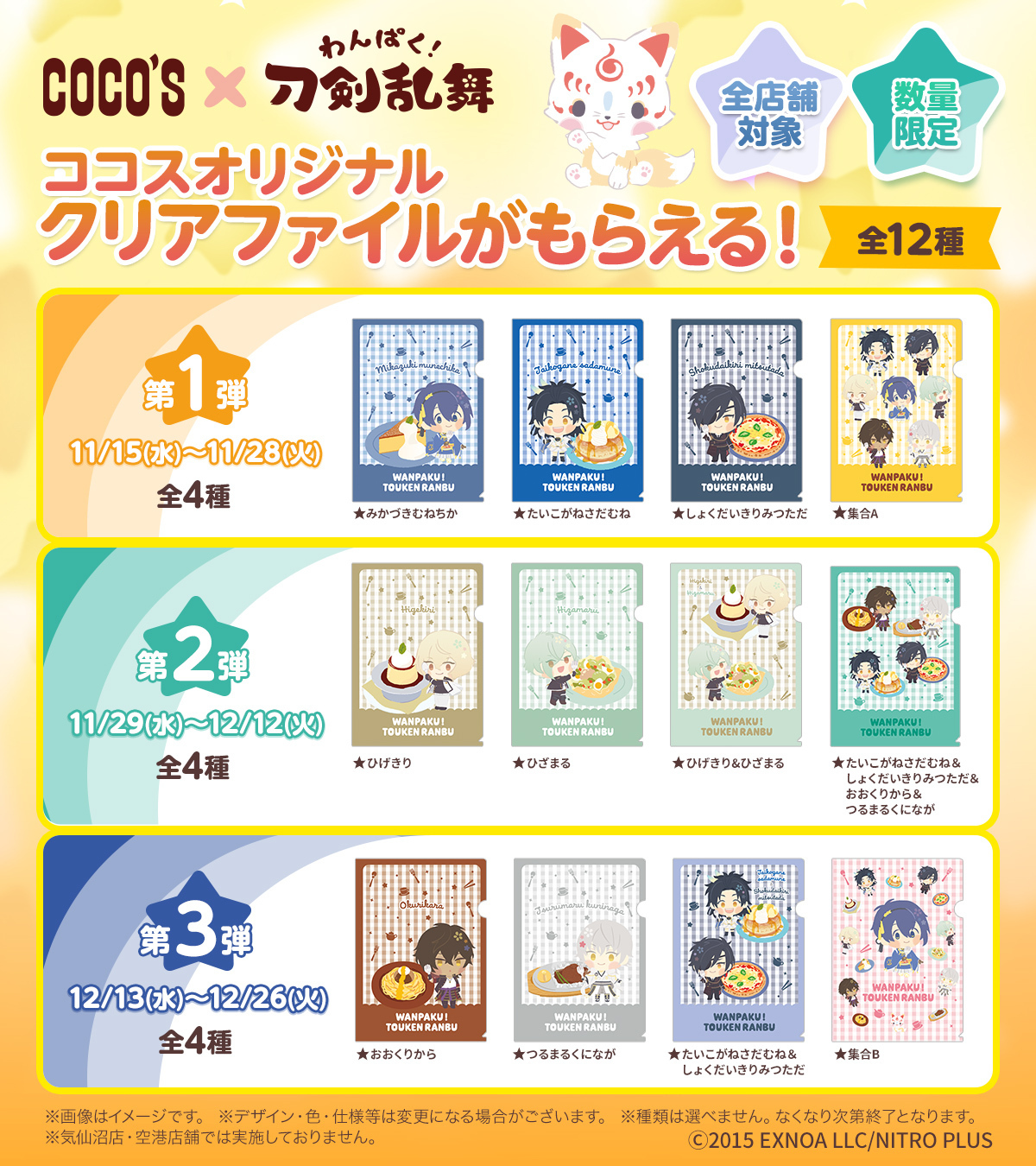 • 画像ギャラリー No.001 | 「わんぱく!刀剣乱舞」とファミリーレストラン「ココス」のコラボが11月15日から開催。刀剣男士をイメージしたコラボメニューも登場