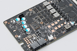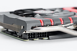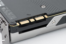 上の表1でも示してあるとおり,PCI Express補助電源コネクタは6ピン×2で,カード全体では合計225Wの電力供給が可能となっている。カード自体のTDP(Thermal Design Power,熱設計消費電力)は165Wだから,電力供給能力的にはかなりの余裕があると見てよさそうだ。