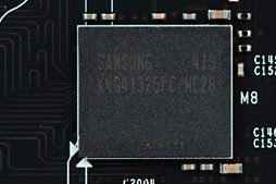 組み合わされるグラフィックスメモリチップは,GTX 980リファレンスカードと同じく,Samsung Electronics製のK4G41325FC-HC28だった。メモリ周りの仕様はGTX 980とGTX 970とで変わらないため,この仕様も納得といったところである。