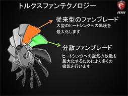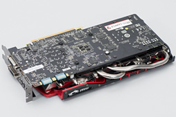 MSIによれば,「ヒートパイプをGPUに直接触れさせようとすると,GPUのダイに触れないヒートパイプが出てきてしまう。素早く熱移動させるためには,銅製のベースを用意するのが最良」とのことなので,SuperSUは,ヒートパイプがGPUに直接触れる構造を採用するASUSの「DirectCU」に対抗した命名なのかもしれない。