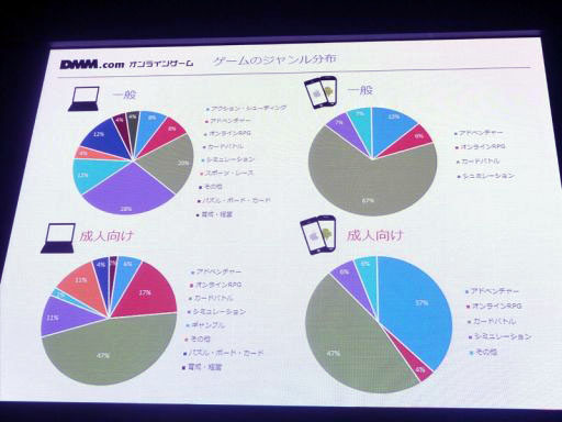 ![画像集#088のサムネイル/[TGS 2014]新作「銀河英雄伝説タクティクス」「神刻(とき)の娘」以外にもアップデートなどの新情報が満載だったDMMステージイベント詳報](/games/274/G027473/20140919040/TN/088.jpg) プラットフォーム別のタイトル数内訳。スマートフォン用タイトルがダントツの数 |