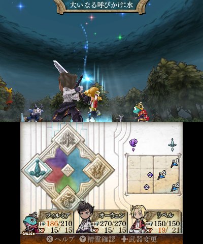「双次元バトル」といった独自要素も満載だ。また,1つ1つの行動が戦況を左右する,歯ごたえのある戦闘も大きな魅力となっている。