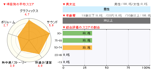 グラフィックス サウンド 快適さ/運営 熱中度/ストーリー ボリューム 5 5 4 2 1 -