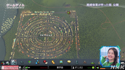 ちなみにゲストの岡崎さんは京都の宇治出身ということで,それを模した街「新宇治」を本作で作成した。新宇治サンドバックスという架空のサッカーチームのホームグラウンドや,パリを意識して作ったというサークル状の居住区アホアホヒルズといったユニークな街を披露している。