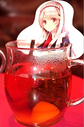 オデット〜はアールグレイの紅茶にカットしたオレンジが浮かぶ,上品な一品で,スイーツ類との相性は抜群だ。アンナと〜にはオレンジペコーが使われており,店内の等身大アンナを眺めつつ飲むのも面白いかも。軍師特製〜は,その名のとおりのほうじ茶で,コラボカフェでの最後の締めに頼むとよいだろう。