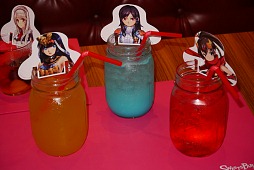 コラボドリンクは,「ホルエスの情熱ソーダ」「忍者サキの甘い春」「提督と亡霊の淡い夢」がコールドのジュース系。「オデットと午後のひととき」「アンナと秘密のアプリコットティー」「軍師特製ほうじ茶」がホットのお茶系となる。