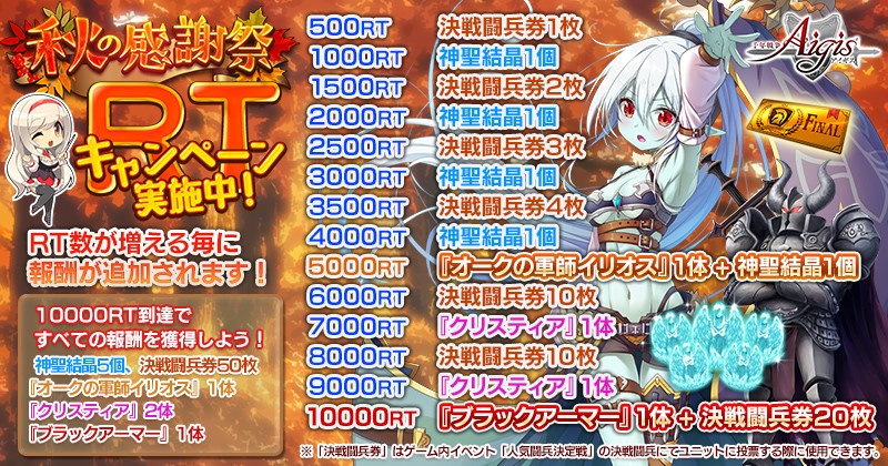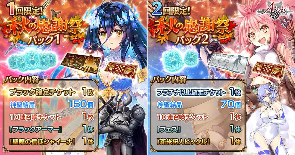 「千年戦争アイギス」,“秋の感謝祭キャンペーン”が本日スタート