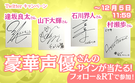 「夢王国と眠れる100人の王子様」で声優のサインが当たるキャンペーン第4弾