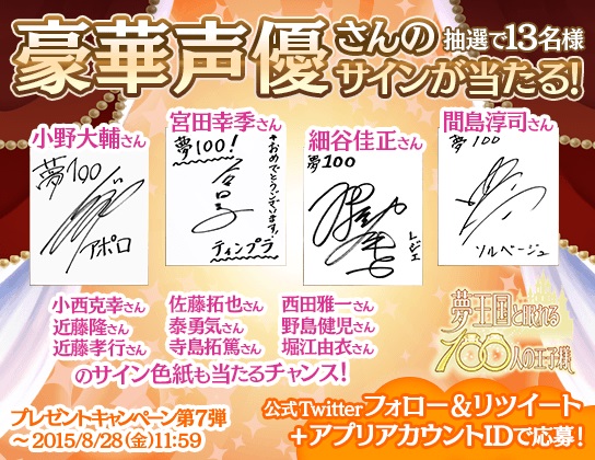 「夢王国と眠れる100人の王子様」,声優陣13名のサインをプレゼント