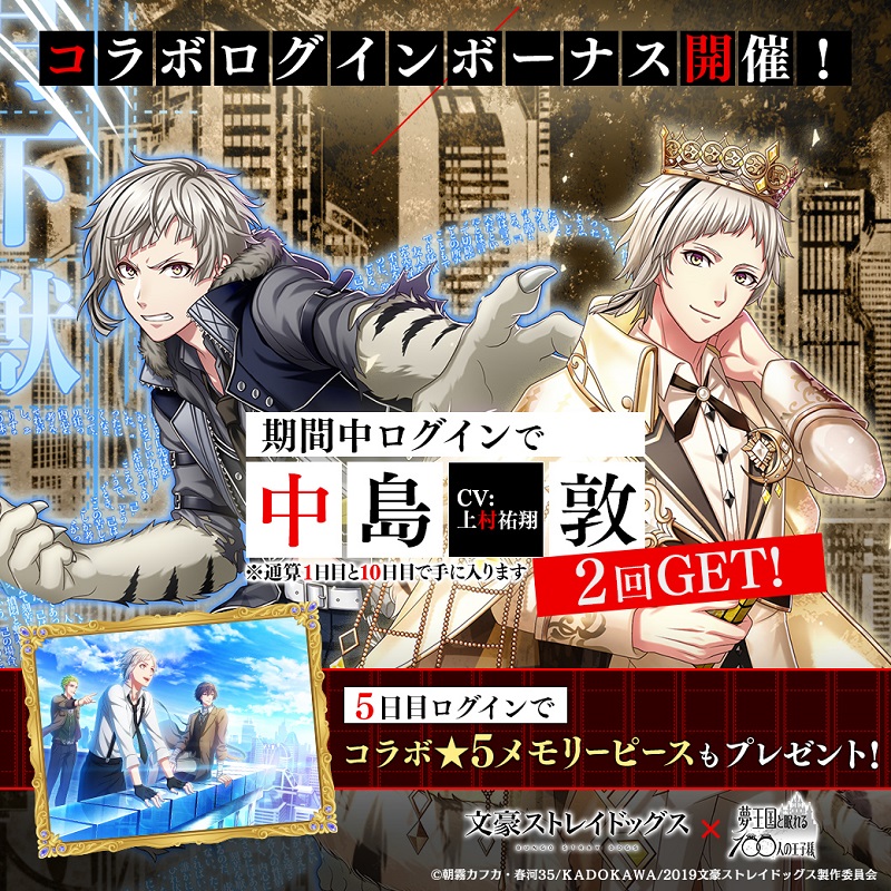 「夢100」とアニメ「文豪ストレイドッグス」の再コラボが11月13日より開催