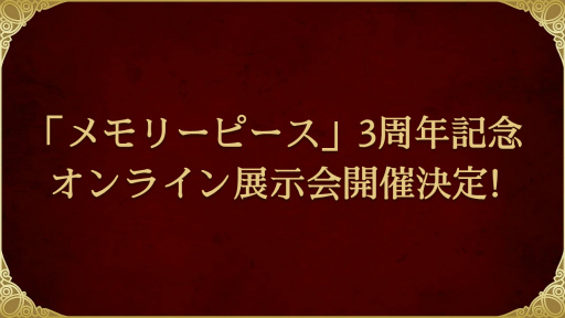 2022年5月に「メモリーピース」リリース3周年を記念し、オンライン展示会の開催が決定いたしました。詳細は、後日公式Twitter等でお知らせいたします。