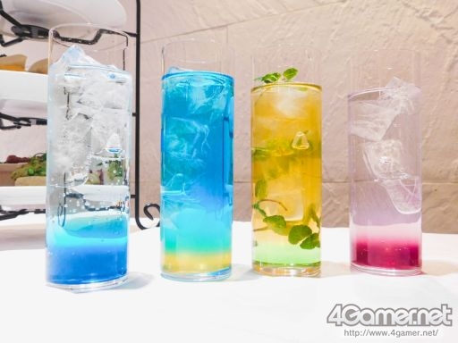 筆者はアキトを注文したのだが,甘いパッションフルーツシロップやオレンジジュースと,すっきりとしたアイスティーが合わさってとても飲みやすく美味しかった。今回の試食会で全ドリンクを撮影して,アヴィらしい赤が再現されたものやミントが涼し気なリオンのドリンクなど,ほかの王子たちの味も気になってしまった。会期中に何度か通って,ぜひコンプリートを目指したいところだ。