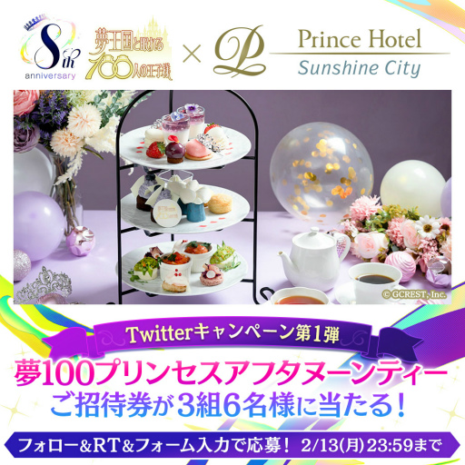 また,「夢100」8周年を記念して,サンシャインシティプリンスホテルとのコラボ企画を3月1日より開催されることも発表された。本コラボでは,アフタヌーンティーとオリジナルのルーム宿泊プランが用意される。予約受付は今日から始まっているので,気になる人はチェックしよう。