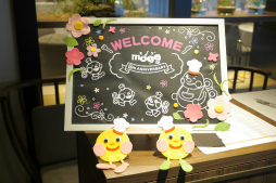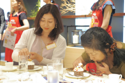 来場者全員にも、生クリームがのったマグカップケーキが配布され、モグぞうのデコレーションを体験していただきました。色々な顔を見せるモグぞうのカップケーキに加え、コーヒーや紅茶が配布され、ちょっとしたスイーツタイムとなりました。