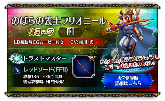 「FFBE」,新規CGムービーLB付きユニット「のばらの義士フリオニール」参戦