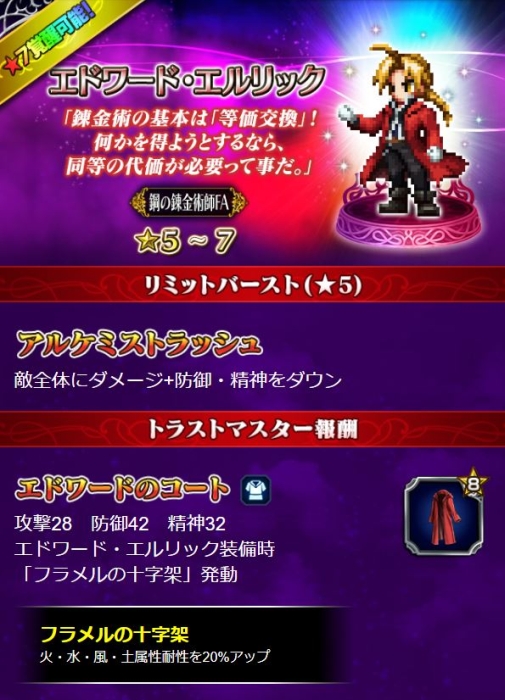 「ファイナルファンタジー ブレイブエクスヴィアス」でアニメ「鋼の錬金術師 FULLMETAL ALCHEMIST」とのコラボが開始