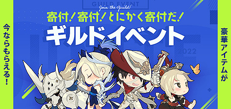 「ギルド」に加入して「寄付」をするだけで、もれなく「バトルアイテム総合箱」など冒険に役立つアイテムをプレゼントするギルドイベントを開催いたします。ギルドに加入している方はもちろん、まだ加入していない方はぜひ自分に合ったギルドを見つけてご参加ください。