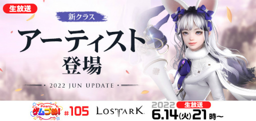 株式会社ゲームオン[本社:東京都渋谷区、代表取締役社長:文 智秀(ムン ジス)]は“すべての人に捧げるオンラインRPG”『LOST ARK』(以下『ロストアーク』)において、2022年6月14日(火)21時から、ゲームオン生放送番組「Pmangのゲムづめ!」で、最新アップデート「新クラス アーティスト」を中心とした6月アップデートに関する内容を配信いたします。