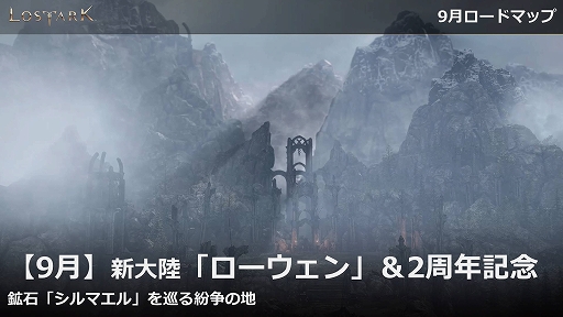 また,9月アップデートの情報として,新大陸「ローウェン」の実装と,2周年記念イベントの実施が予定されていることが紹介された。