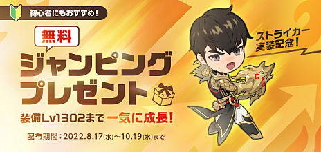 また,ストライカーの実装に合わせて,一気に戦闘レベル50,装備レベル1302に到達できる「ストライカー実装記念ジャンピングイベント」や,強化素材やゴールドが手に入る「超成長祭」などが開催されている。詳しくは以下のリリース文を確認してほしい。