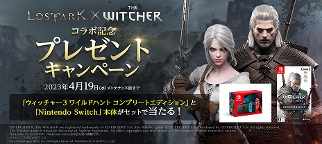 また、「ザ・ウィッチャー」とのコラボレーションも開催しており、「ウィッチャー 3 ワイルドハント コンプリートエディション(Nintendo Switch版)」と「Nintendo Switch」本体がセットで当たるキャンペーンも実施中です。