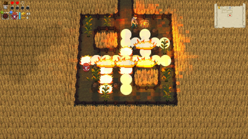 うむ,これはボンバーマンである。よく見ればデベロッパのゲーム紹介文にも,「A Bomberman-inspired Wild West action game with bombs!」と書かれており,このゲームがボンバーマンから着想を得た作品であることは間違いない。