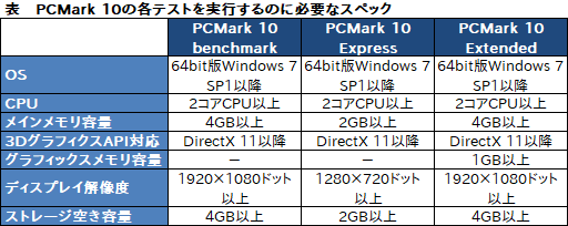 なお,各テストを実行するのに必要なPCスペックは以下のとおり。32bit版OSは対象外となっている。