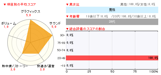 グラフィックス サウンド 快適さ/運営 熱中度/ストーリー ボリューム 5 5 3 3 1