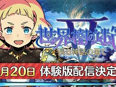 アトラスは2016年8月4日に発売を予定している3DS用RPG「世界樹の迷宮V 長き神話の果て」の体験版を,7月20日に配信すると発表した。本作の冒頭部分が楽しめる体験版は,データもすべて製品版への引継ぎが可能とのことだ。あわせて,本作のBGMが懐かしのFM音源に切り替わるDLCの配信が決定したことも明かされている。