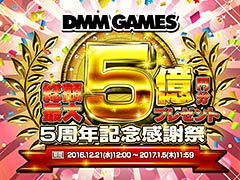 総額5億円相当のポイントが当たる。DMM GAMESのサービス開始5周年を記念したキャンペーンが12月21日に開催