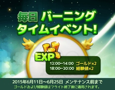 2. バーニングタイム中、ゴールド&経験値2倍