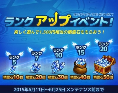 3. 規定ランク達成時、それぞれのレベルに応じて精霊石プレゼント