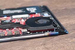 ただ,ここにもドラマがあったそうで,園田氏は「排熱管理はかなり苦労しました」と振り返っていた。「ヒートパイプはもともと2本だったのですが,それでは温度がなかなか下がらず,1本増やして3本にしたという経緯があります。また,ファンとフィン,そしてヒートパイプも,もともとは異なるパーツを組み合わせた実装になっていたのですけれども,やはり,それだと十分な冷却能力を発揮できなかったため,ファンとフィン,ヒートパイプを一体化したものへ変更しました。