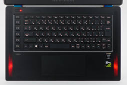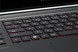 実のところ,このキーボードも特注品だ。ノートPCのキーボードは一般に,メンブレンシートの上にパンタグラフ機構とキートップが載った,単体デバイスになっているのだが,「HP OMENでは,しっかりしたキーストロークを確保するのと,デザイン上の統一感をもたらす目的から,筐体と一体化してあります」(園田氏)とのこと。一味違う完成度になっているのだ。