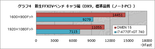 グラフ4,5は新生FFXIVベンチ キャラ編の結果だ。OMEN 15はi7