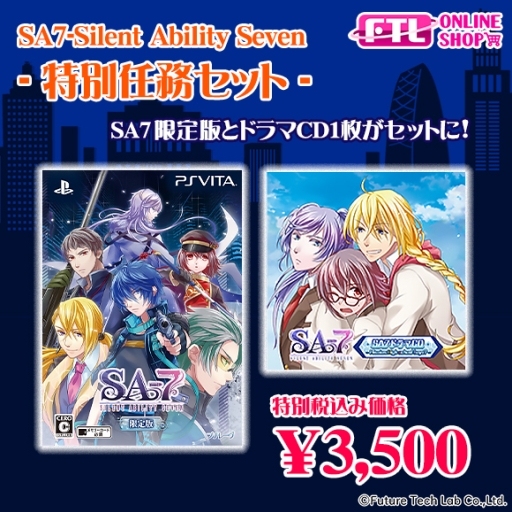 2018年7月6日(金)午前10時から株式会社Future Tech Labの公式オンラインショップ【FTL ONLINESHOP】(https://www.ftlonlineshop.jp/ )にてゲーム&ドラマCD1枚がセットになった「SA7-Silent Ability Seven-特別任務セット」を数量限定販売いたします。