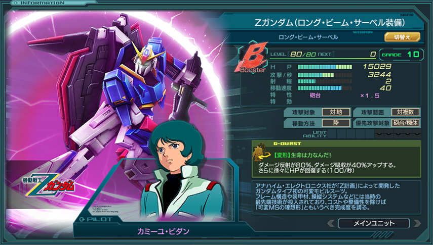 「ガンダムジオラマフロント」にロング・ビーム・サーベル装備のZガンダムが登場