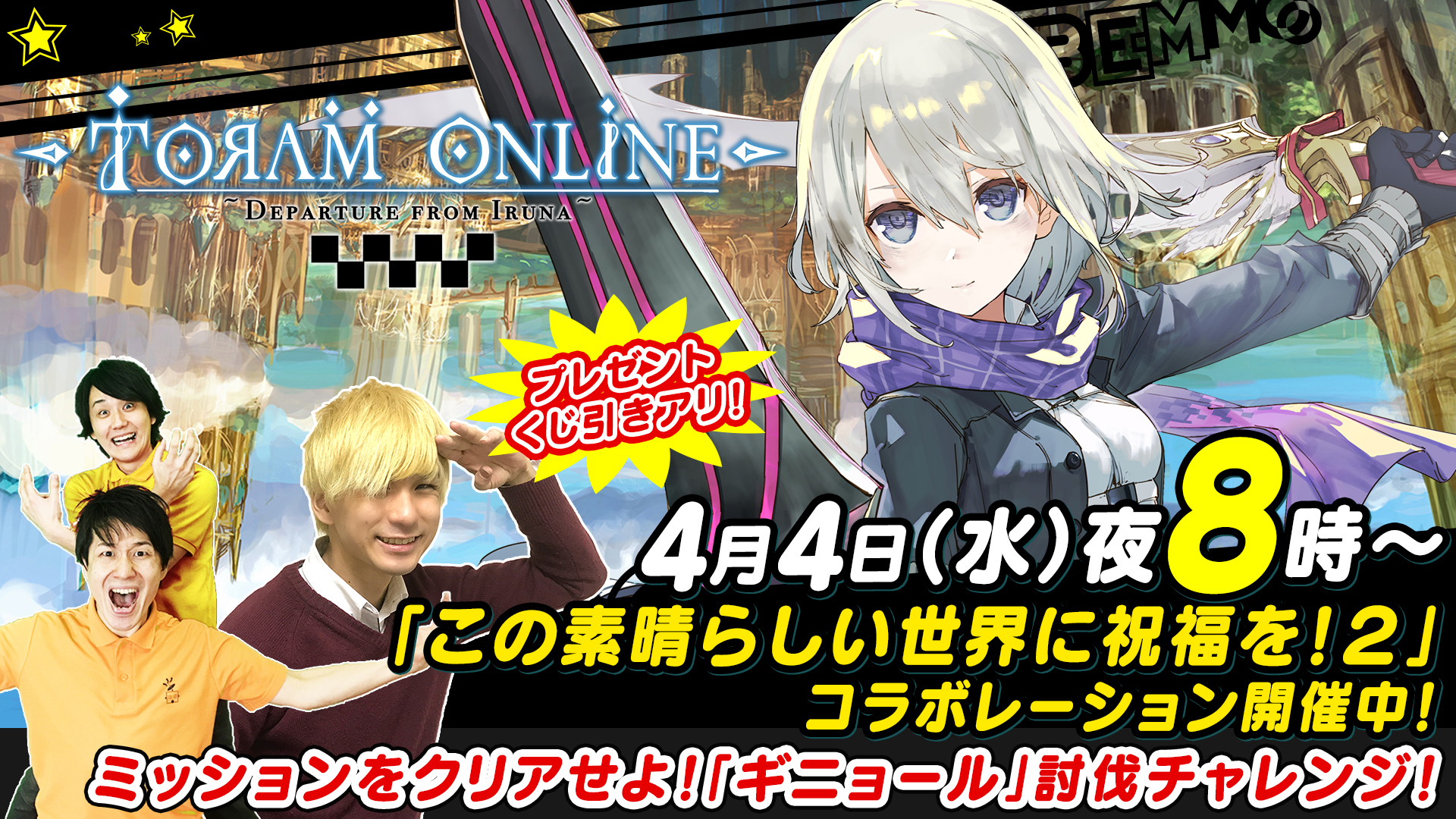 「トーラムオンライン」,4月4日20:00より「このすば2」コラボを紹介する公式生放送を実施
