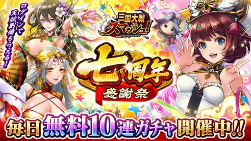 「三国大戦スマッシュ!」,“七周年感謝祭”開催中。初回ログイン時に天賦解放「劉備」をプレゼント