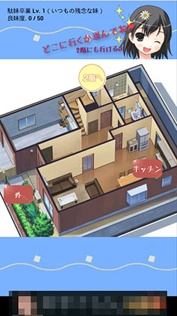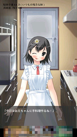 舞台は2人が住む一軒家で,ゲーム開始時はキッチンと妹の部屋,外に行けるので,まずはこの3か所で妹に会おう。場所ごとに複数のエピソードが用意されており,会話が終了すると,その内容によって良妹度が上昇していく。ちなみに,会話シーンに選択肢などは表示されず,基本的に画面をタップしていれば物語を読み進められるようになっている。