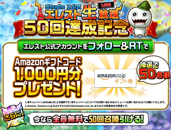 「エレメンタルストーリー」,公式生放送50回達成記念キャンペーンを実施