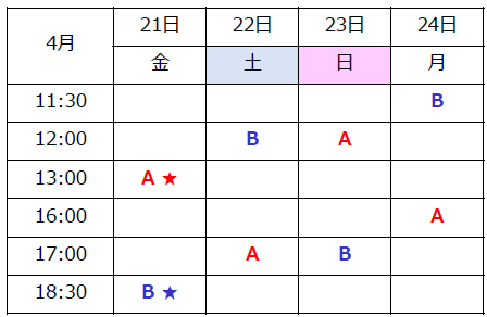 2023年4月21日(金)〜 24日(月)全8公演