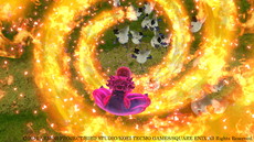 ↑火柱に吹き飛ばされつつも、炎を束ねて敵にお見舞いするマリベルの必殺技「れんごくの火炎」!